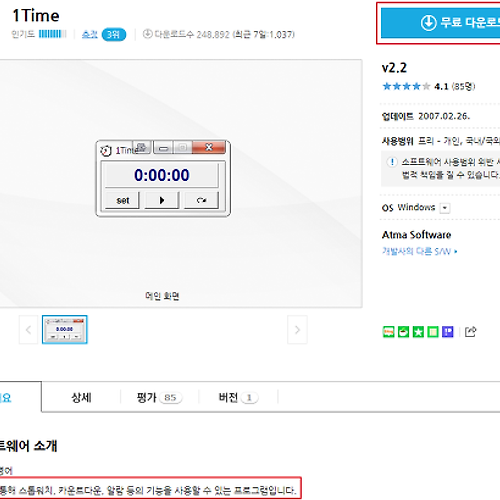 요리나 업무를 볼 때 타이머로 시간을 재야할 때가 참 많은데요오늘은 1Time 컴퓨터 알람 알아보겠습니다네이버에 1time을 검색하면 소프트웨어 자료실에서무료로 다운로드 받을 수 있는데 스톱워치로 많이들 사용하시네요1타임은 컴퓨터로 카운트다운, 알람, 스톱워치 등을이용할 수 있는 프로그램이구요그 외에도 Xnote timer, onlystopwatch 등 다른 프로그램들도 있으니참고하세요 이상 1time 컴퓨터 알람에 대해알아보았습니다